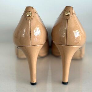 Stuart Weitzman Nude Peep Toe Patent Leather Pumps | 9.5 M