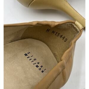 Stuart Weitzman nude buttery soft leather heels, patent leather on toes and SW emblem, cushioned insole