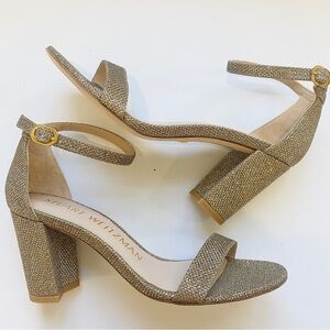 Stuart Weitzman Nudist Block 75 Gold Sandal