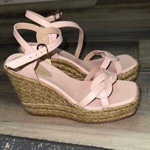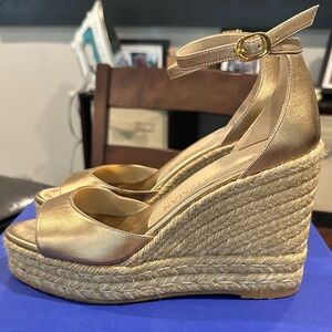 Stuart Weitzman Nudist Curve Espadrille Metallic Gold Wedge Sandals
