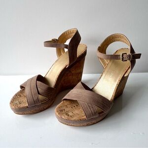 Chic metallic gold wedges by Stuart Weitzman. Stylish and comfortable for any event.