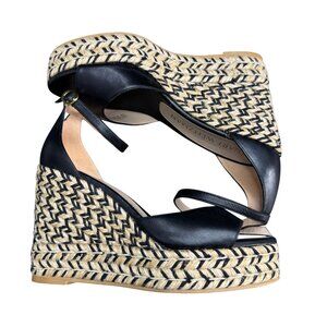 Stuart Weitzman Nudist Curve Espadrille Wedge Sandals Black, 7.5B WORN ONCE
