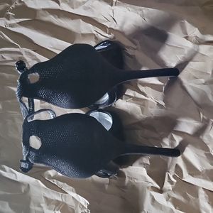 New w/out box, Stuart Weitzman sandal in signature goosebump Napa leather. Sleek 4 5" covered heel. Adjustable ankle strap with buckle closure. Keyhole opening at heel. Leather sole. Thin strap band open toe. Elegant, classy yet sexy, perfect for any occasion and great for day-to-evening transition. Interesting leather texture makes it work both as a summer sandal and as a holiday party option.
