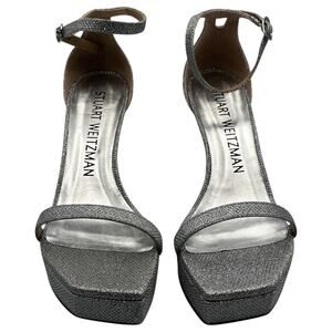 Stuart Weitzman Nudist Party 95 Ankle Strap Platform Heels Sandals Silver 9.5