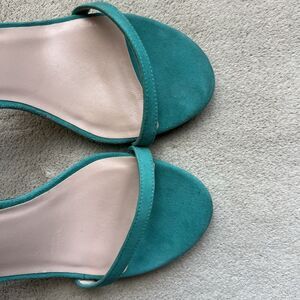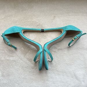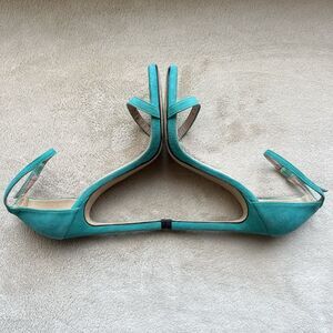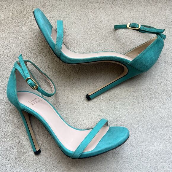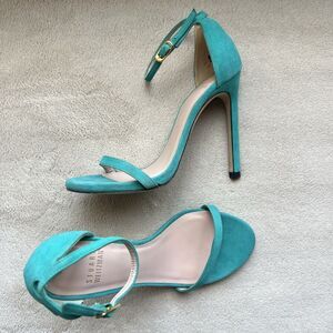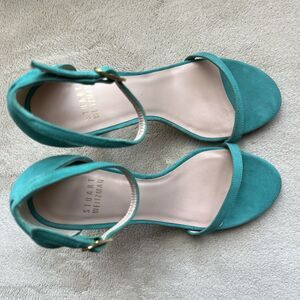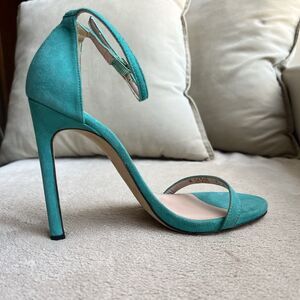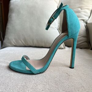 Stuart Weitzman Nudist Turquoise Teal Suede Stiletto Heeled Sandals Women 5 M