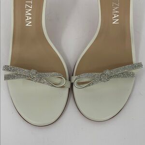 Stuart Weitzman Nudist bow sandal shoe white leather clear crystal formal 9.5