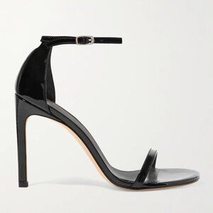 Stuart Weitzman's sleek and classic 'NudistSong' sandals will work with virtually everything in your wardrobe. A brand signature, this glossy patent-leather pair has a graded heel and lightly cushioned insole. Adjust the slim ankle strap to find the perfect fit.