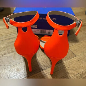New Stuart Weitzman Nudistcurve 100 Sandal in Orange Neon Blaze