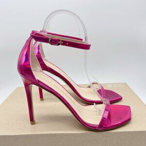 Stuart Weitzman Nudistcurve 100 Strap Sandal Iridescent Patent Orchid Pink US 6