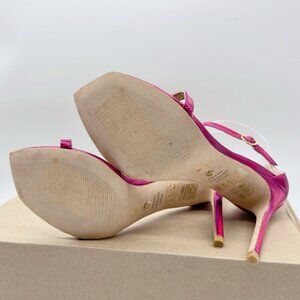 Stuart Weitzman Nudistcurve 100 Strap Sandal Iridescent Patent Orchid Pink US 8