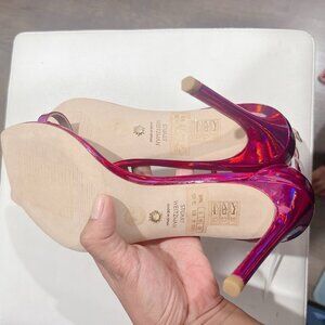 Stuart Weitzman Nudistcurve 100 Strap Sandal Iridescent Patent Orchid Pink US8.5