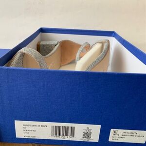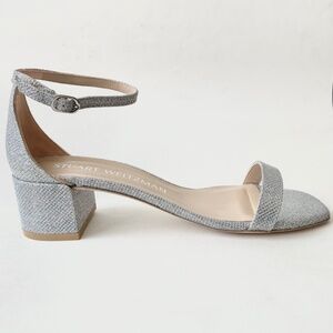 Stuart Weitzman Nudistcurve 35 Silver Block Heel Ankle Strap Sandals Pumps Women’s Shoes