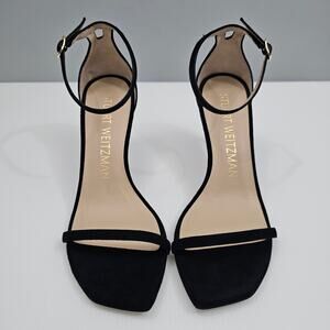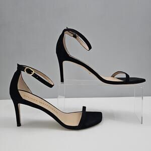 Stuart Weitzman Nudistcurve 75 Sandal Womens 8 Black Suede Strappy Heel Designer