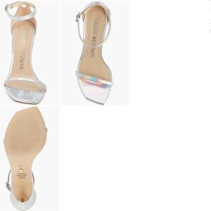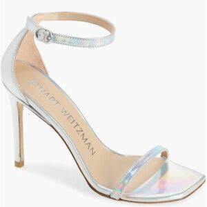 Stuart Weitzman Nudistcurve Ankle Strap Sandal Metallic Leather High Heel Pumps