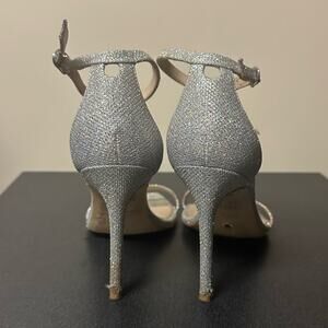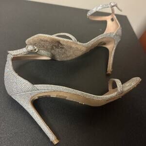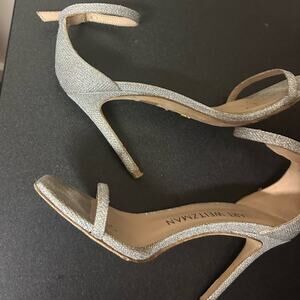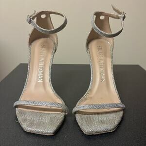 Stuart Weitzman Nudistcurve Glitter Ankle Strap Sandals Silver Crystal Size 8.5