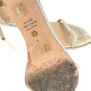 Stuart Weitzman Nudistcurve Heels 9 Platino Silver Sandal Wedding Bridal Glam