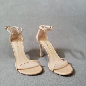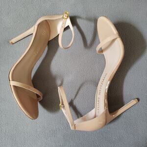 Stuart Weitzman Nudistsong Heels Adobe 8.5 STUA-WZ128 Tan Brown Patent Leather