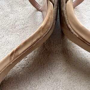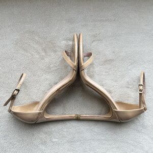 Stuart Weitzman Nudistsong Nude Adobe Patent Leather Sandal Women 6 Ankle Strap
