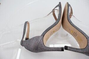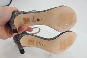 Stuart Weitzman Nunaked Ankle Strap Sandals Silver Gray Glitter Size 5 Evening