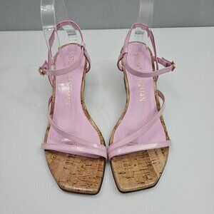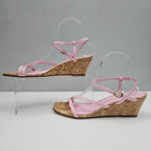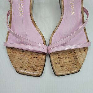 Stuart Weitzman Oasis 50 Sandal Womens 10 Light Pink Cork Wedge Strappy Designer