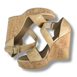 Stuart Weitzman Oneliner Patent Leather Cork Wedge Open Toe Heels Nude Size 9