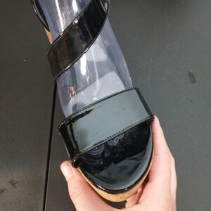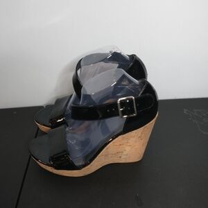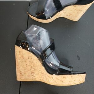 ☀️Stuart Weitzman Oneliner Women's Patent Black Cork Wedge, size 9.5M