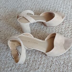 Stuart Weitzman Open Scalloped Taupe Sued Platform Sandal size 8.5M