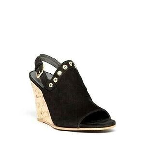Stuart Weitzman Open Toe Slingback Wedge Sandal Eyeliner Black Suede Gro…