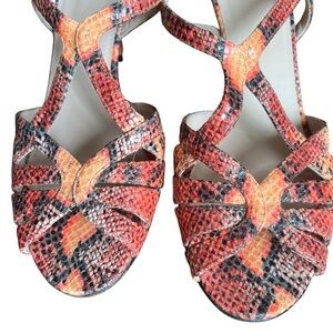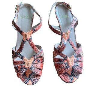 Stuart Weitzman Orange Snakeskin Strappy Kitten Heel Sandals Size 7 Open Toe
