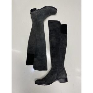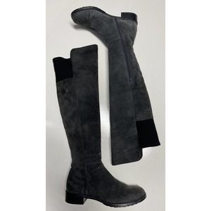 Stuart Weitzman Over The Knee Boot Slate Gray Suede Stretch Elastic Back…
