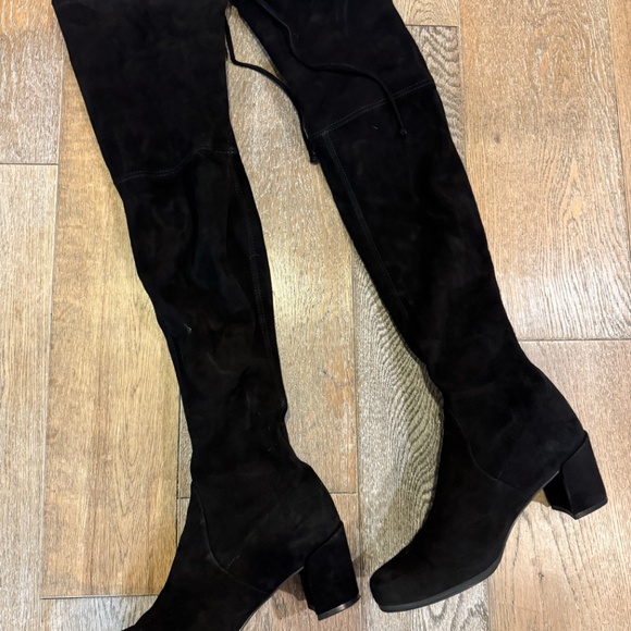 Worn twice and always kept in the box so it is well taken care of. 24 inch from the start of the heel to the top of the boots. Fit is over the knee. Comes with the box.