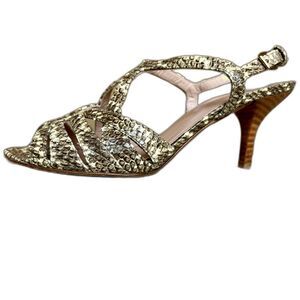 Stuart Weitzman Overture Cream & Black Snakeskin Print Strappy Sandal Women 6.5
