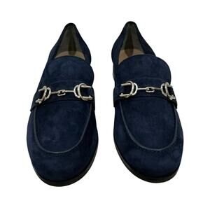 Stuart Weitzman Owen Buckle Loafers Suede Navy Blue Women’s Horsebit Size 9.5