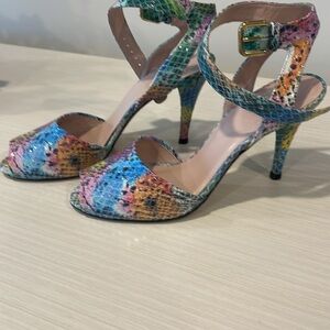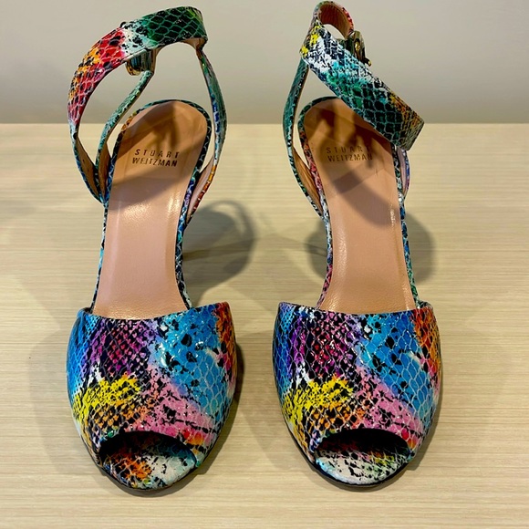 Stuart Weitzman Palette Python Patent 4” heels with ankle strap. Barely worn excellent condition
