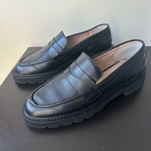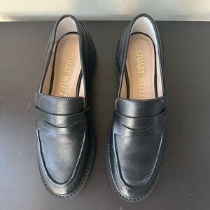 Stuart Weitzman Parker Lift Penny Loafer Black Lug Sole size 5.5AA Narrow