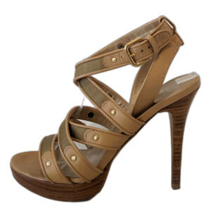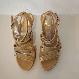 Stuart Weitzman "Parup" GOLD MESH Strappy Gladiator Ankle Strap Tan Sandals Sz 8