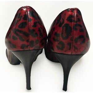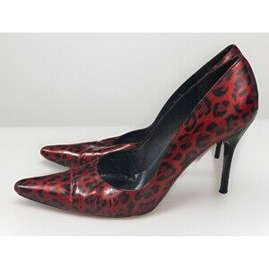 Stuart Weitzman Patent Leather Animal Print Red Black Heels Leopard Cheetah Sz 9
