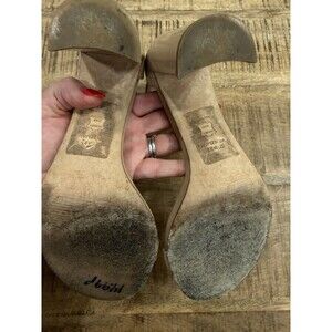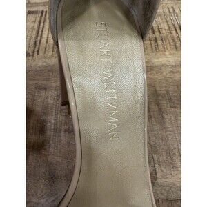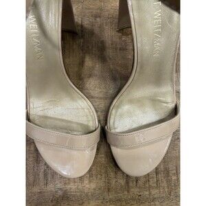 Stuart Weitzman Patent Leather Block-Heel Nudistcurve Sandals Beige Size 7M