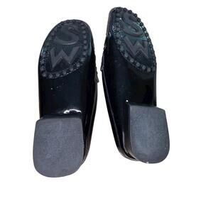 Stuart Weitzman Patent Leather Classic Slip On Mules 7B Black Preppy Square Toe
