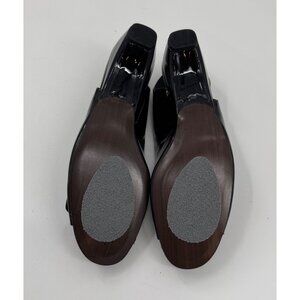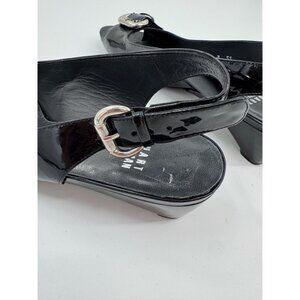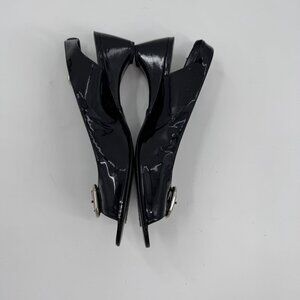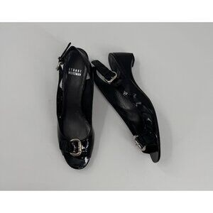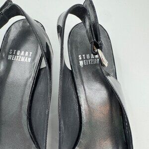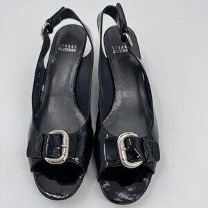 Stuart Weitzman Patent Leather Peep-Toe Slingback Heels Silver Buckle Narrow 8SS