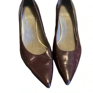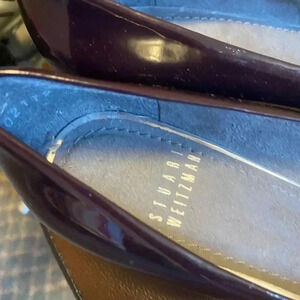 Stuart Weitzman size 6.5 Narrow Point Toe Kitten Heel Purple Patent Leather. These heels are pre-owned. Good conditions. A few marks on the side. See photo. Heel is 1 inch