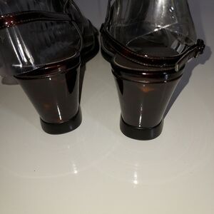 patent wedge heels sandals with side buckle closure