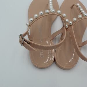 Stuart Weitzman Pearl Jelly Sandals Womens Size 6 Nude T Strap Thong Flats