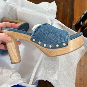 Stuart Weitzman Pearl Washed Denim Clog Sandals NIB Size 7.5B