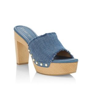 Stuart Weitzman Pearl Washed Denim Clog Sandals NIB Size 7.5B