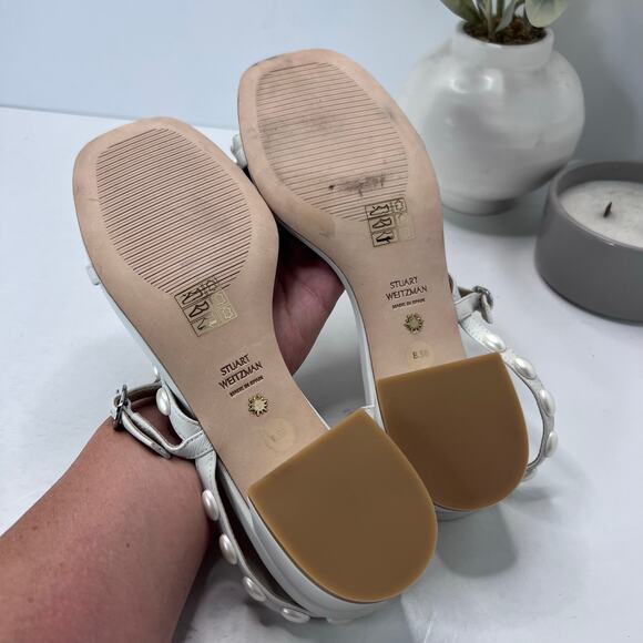 Stuart Weitzman Pearlita 35 Chunky Block Heel Sandal White Women's 8.5B