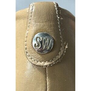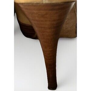 Stuart Weitzman Peep Toe Leather Platform Pumps Heels Tan Wood Size 8