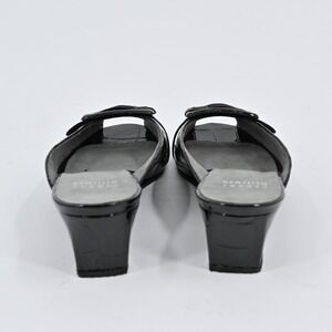 Stuart Weitzman Peep Toe Wedges Womens Sz 6.5 Black Patent Croc Embossed Slip On