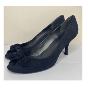 Stuart Weitzman Peep-Toe Ruffle-Bow Heels Sz 11