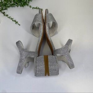 Stuart Weitzman Penelope Quarter Silver Sparkle Sandals Open Toe Fancy Size 1M